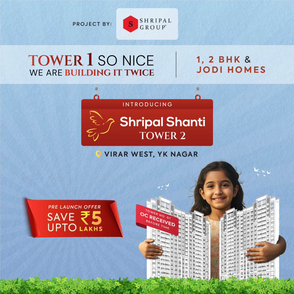 We are launching Shripal Shanti Tower 2 after the successful delivery of Phase 1, offering a refined living experience in Virar. Backed by 39 years of legacy and 60+ successfully delivered projects, Shripal Group continues its commitment to quality and trust. This new tower brings modern amenities, smart planning, and affordable luxury within a gated community.